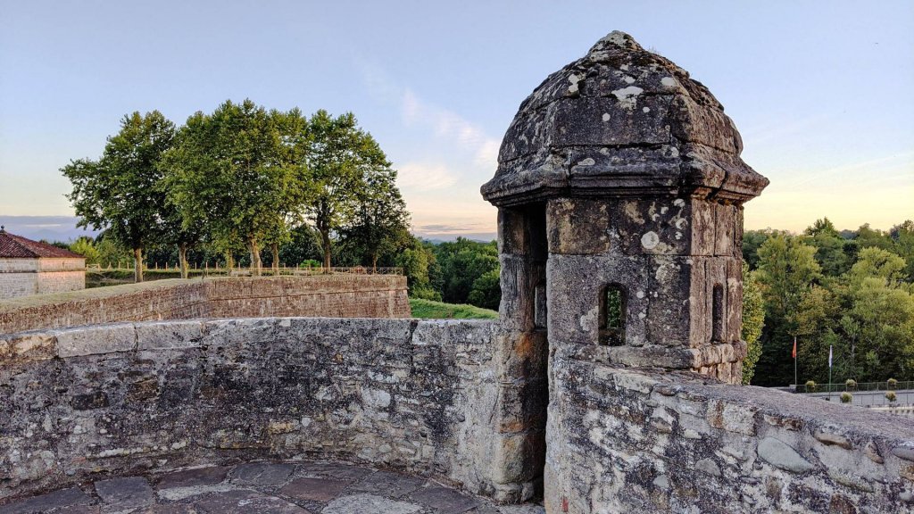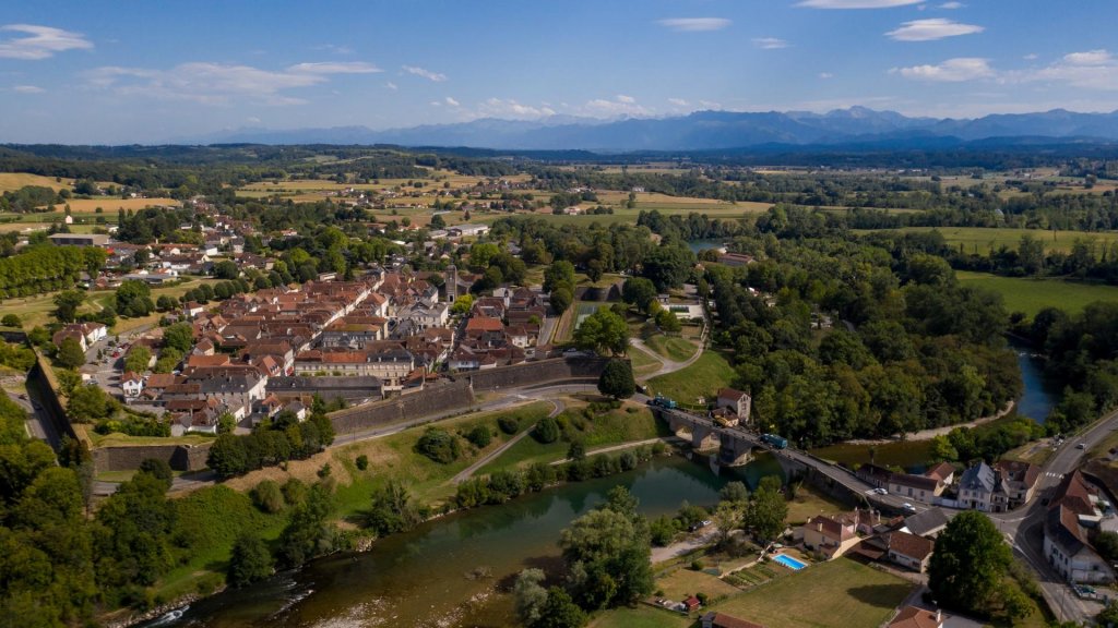 Le sommet des remparts, au niveau de la porte Saint-Antoine, profite d’une vue apaisante sur le Gave d’Oloron traversé par le pont en direction du Pays Basque.