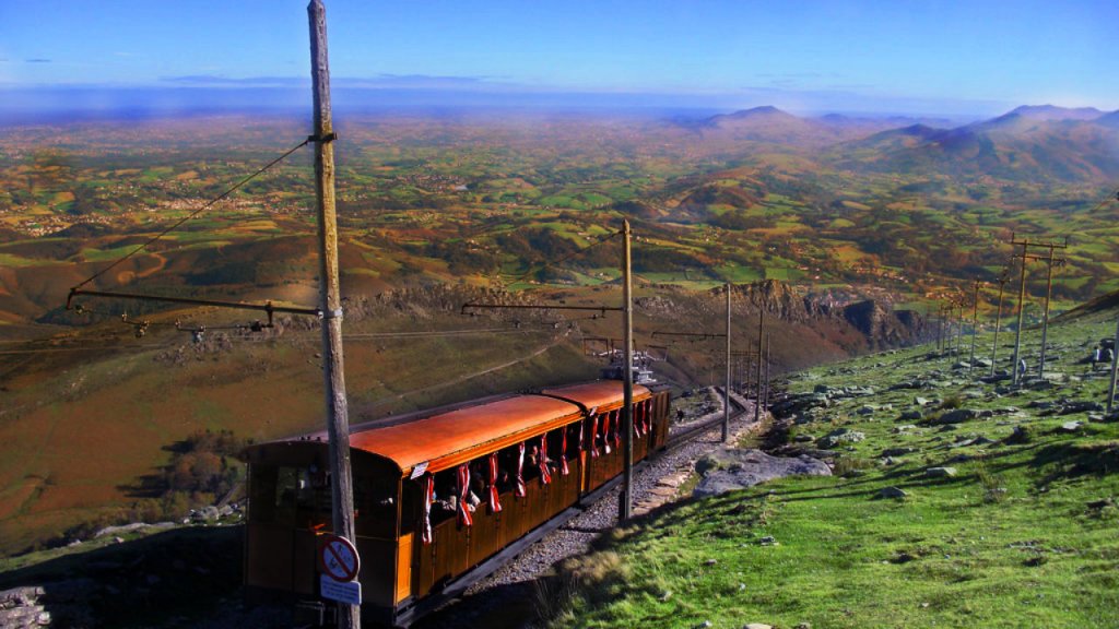 Chemin de fer à crémaillère du début du XXe siècle, la ligne relie le col de Saint-Ignace au sommet de la Rhune à 905 m d'altitude, sur la frontière franco-espagnole.